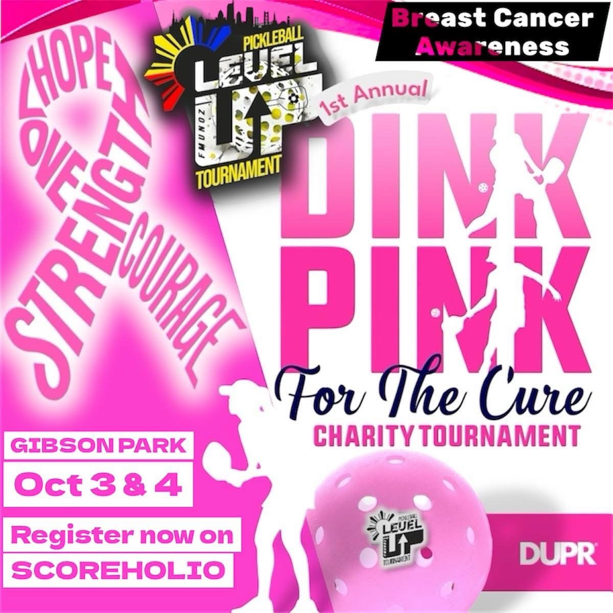 Join us at our next Level Up Pickleball tournament event on Friday, October 3rd and Saturday, October 4th! “Dink Pink” will be a charity event for Breast Cancer awareness month! We will have tons of raffles and fun matches throughout. Bring your friends and families and will see you all on the courts!